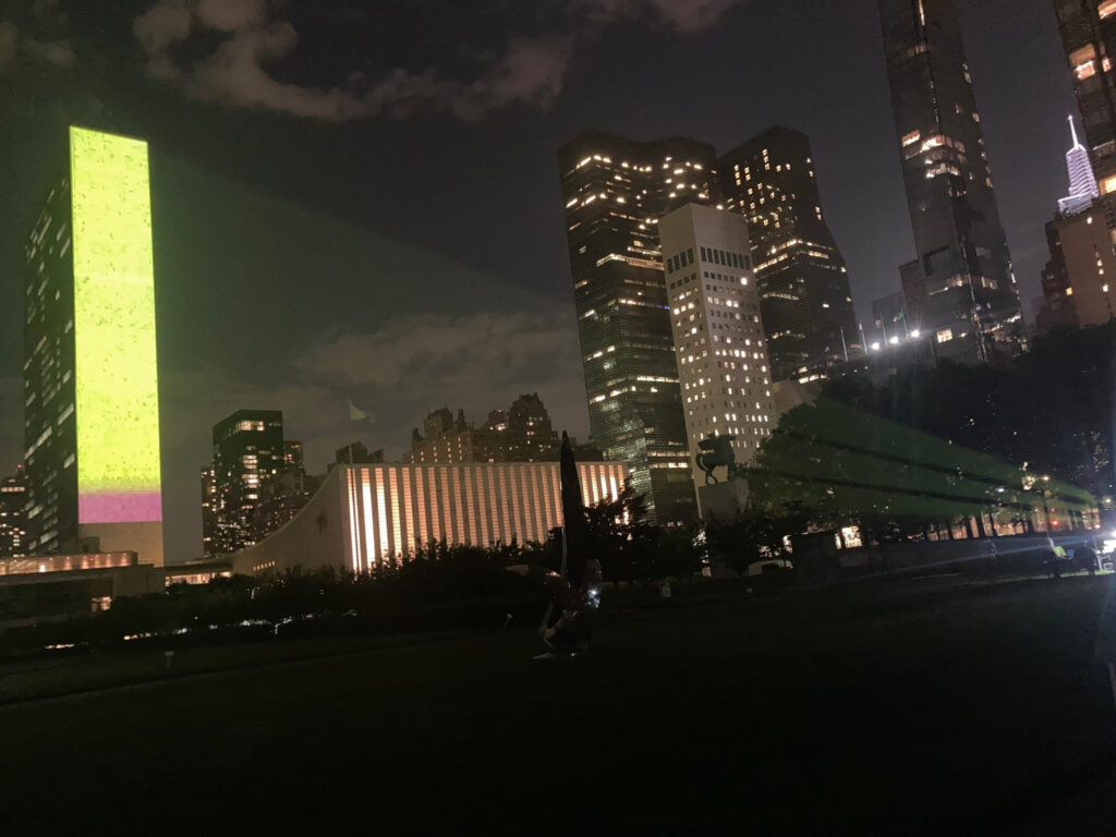 Preceding the Stockholm+50 meeting convened by the United Nations General Assembly, the HEART 17 initiative wanted to bring attention to youth inclusion and creativity as a crucial part of the discussions. As a message to the world, politicians, and business leaders, May 31 the UN Secretariat building in New York was projected with an art piece inspired by artists and youth leaders from all over the world. Also, the artists Torii Wolf and NBHD Nick performed live at UNHQ, together with speeches from global youth leaders.